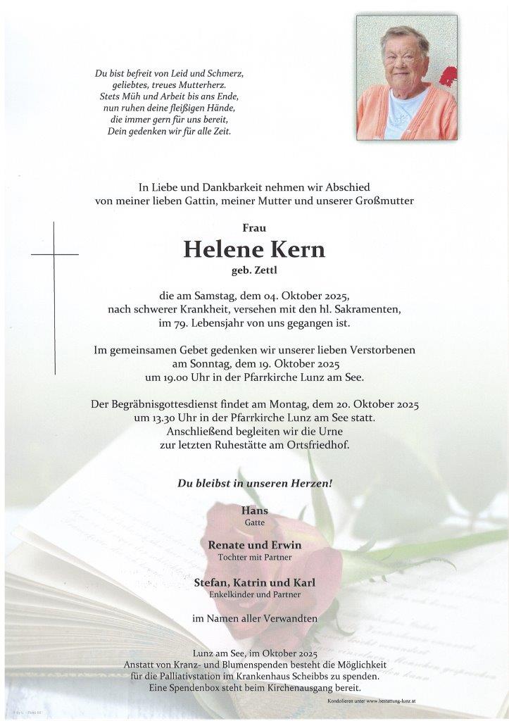 Helene Kern 4.10.20256.10.202567 Kondolenzen zu Helene Kern Dr. Hans Malicky 24.09.202525.09.202517 Kondolenzen zu Dr. Hans Malicky Friederike Resel 12.09.20251.10.2025 Walter Aflenzer 25.08.202510.10.2025 Karl Kern 25.07.202510.10.2025 Rudolf Schedl 23.07.202510.10.2025 Franz Bruckner 20.06.202510.10.2025 Maria Theuretzbacher 11.06.202510.10.2025 Stephan Helmel 30.05.202510.10.2025 Friedrich Lanzenberger 8.05.202510.10.2025 123